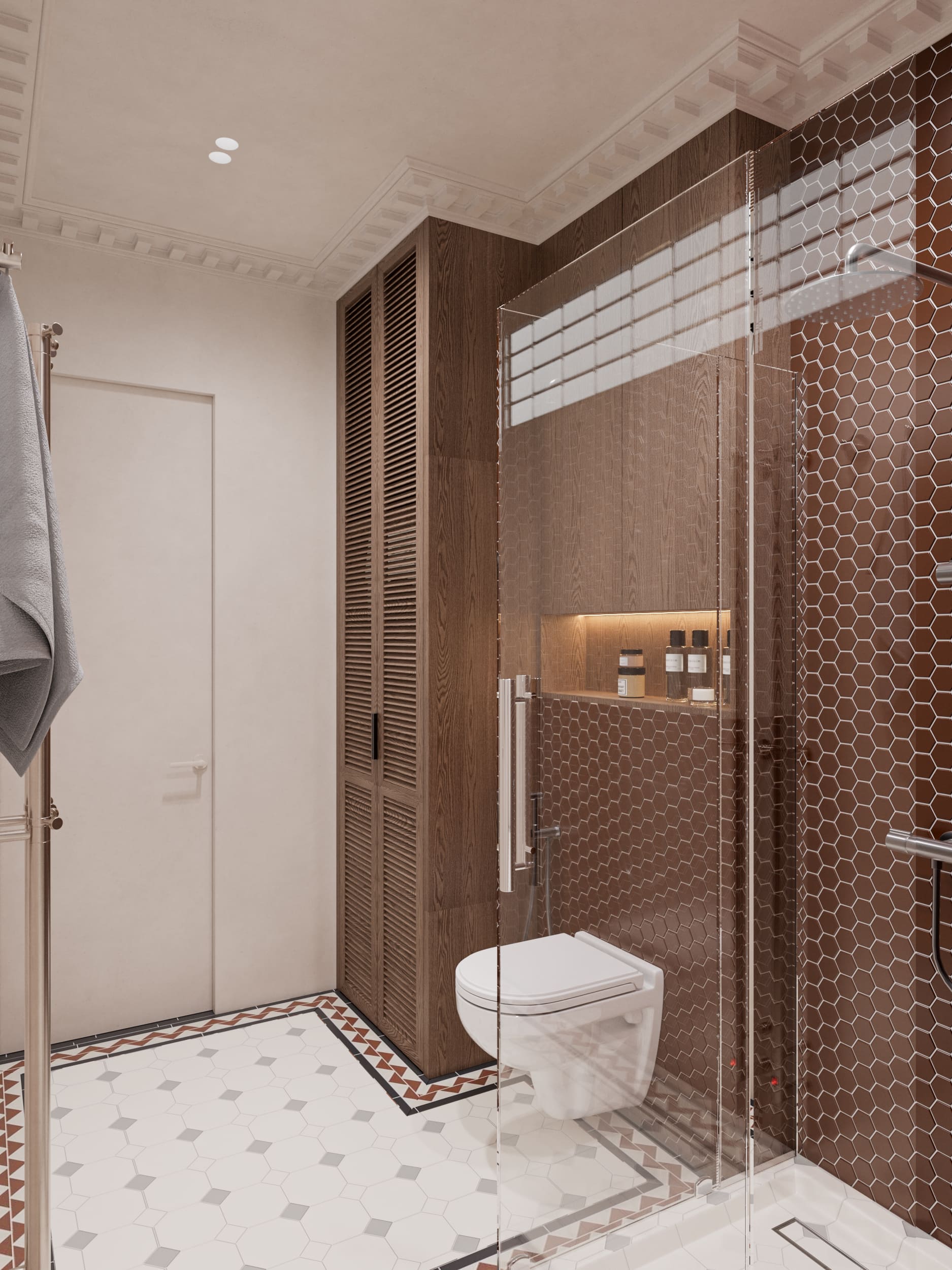 Este apartamento presenta un estilo clásico moderno. El interior combina elementos arquitectónicos clásicos con expresivos toques modernos.
